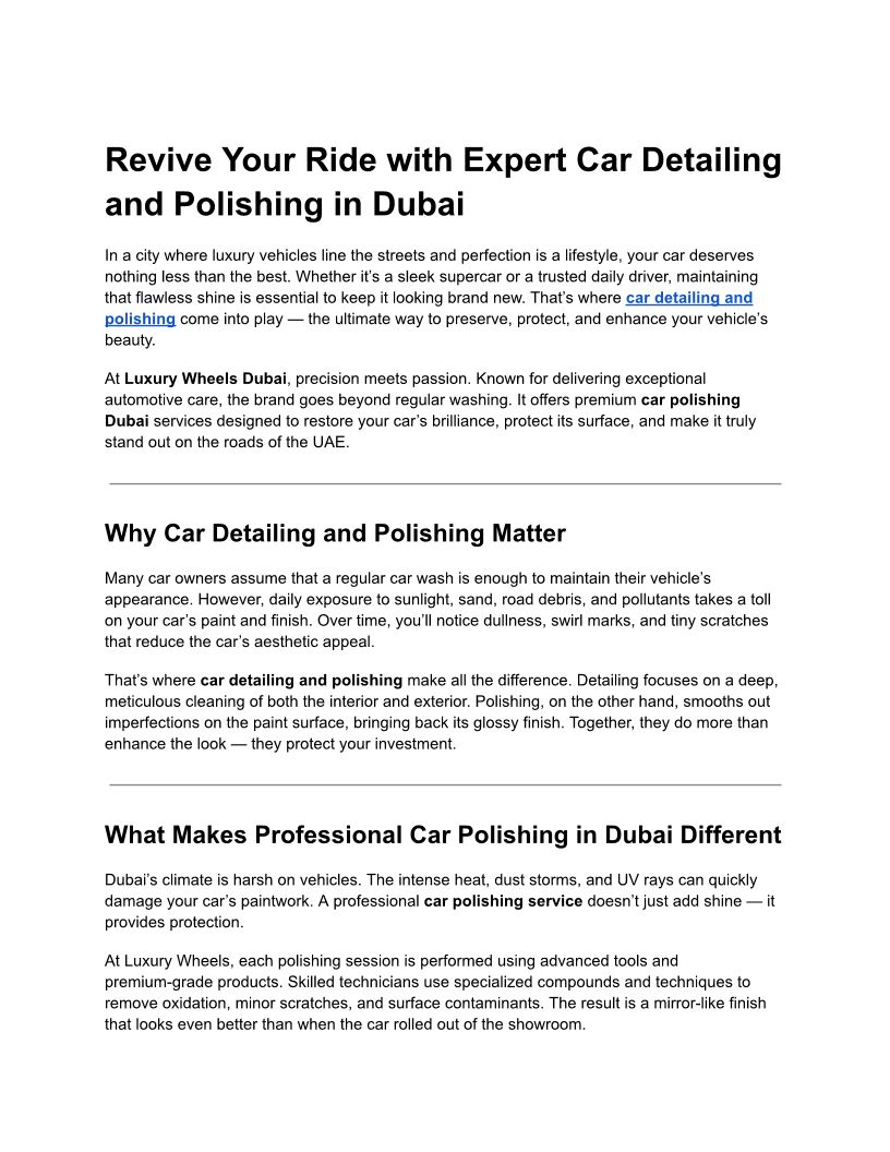 Revive Your Ride with Expert Car Detailing and Polishing in Dubai