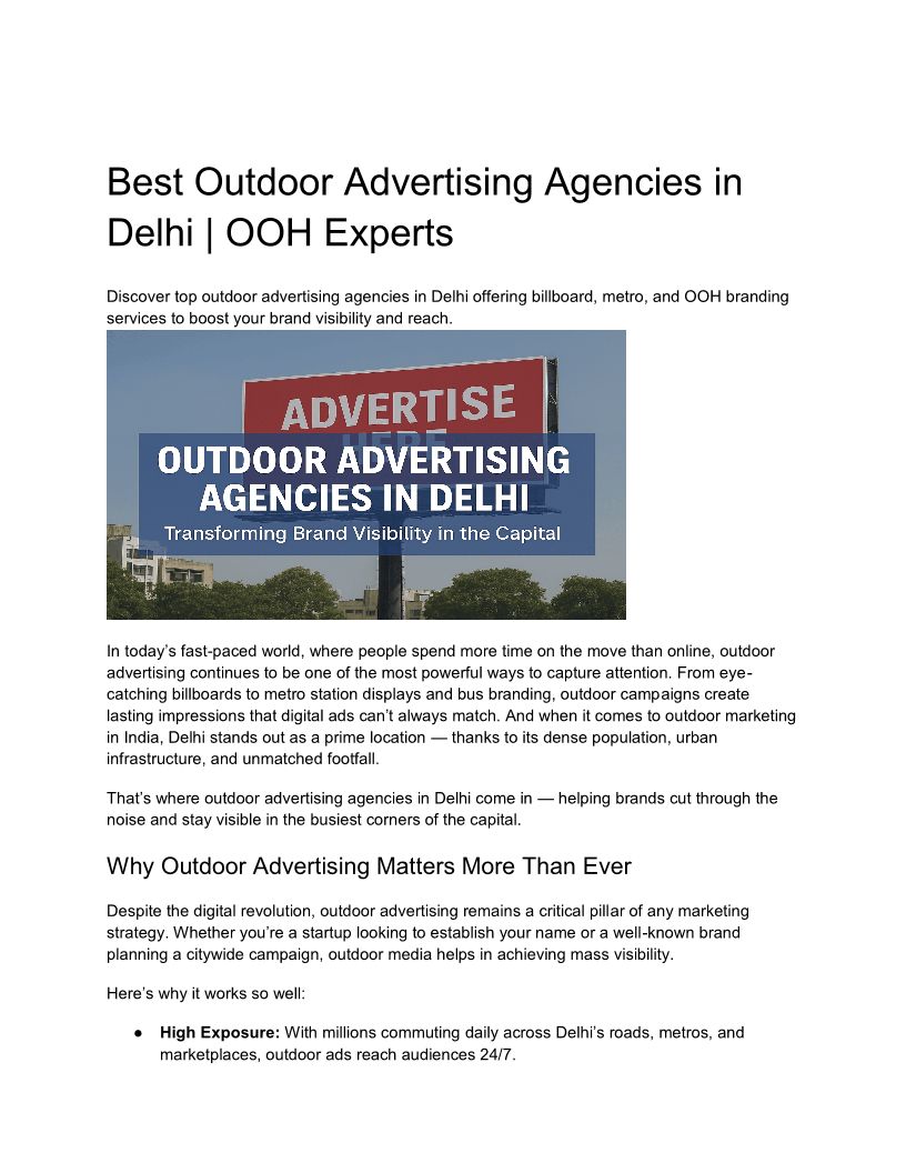 Best Outdoor Advertising Agencies in Delhi _ OOH Experts