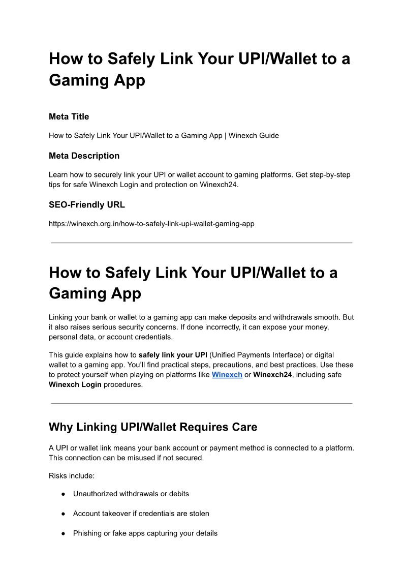 How to Safely Link Your UPI/Wallet to a Gaming App