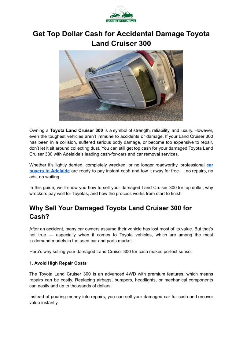 Cash for Accidental Damage Toyota Land Cruiser 300