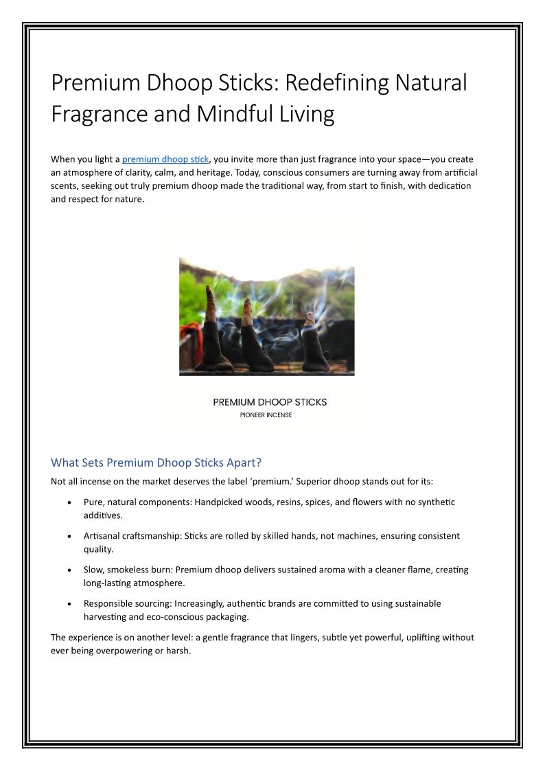 Premium Dhoop Sticks: Redefining Natural Fragrance and Mindful Living