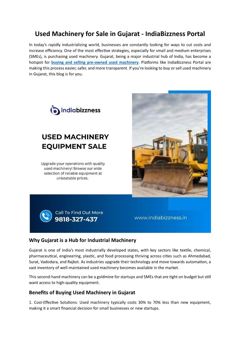Used Machinery for Sale in Gujarat - IndiaBizzness Portal
