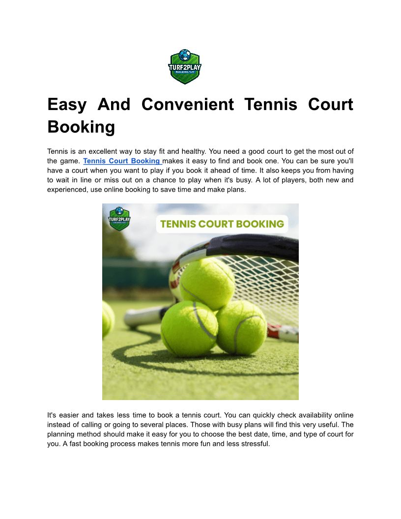 Easy And Convenient Tennis Court Booking