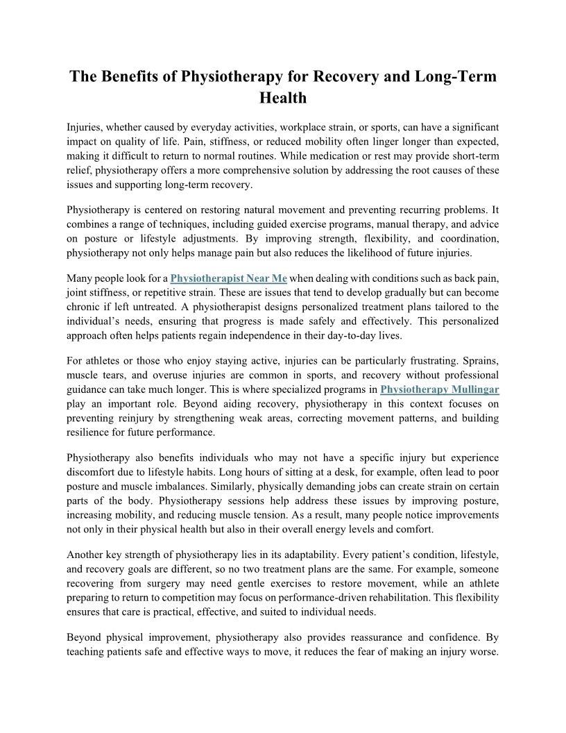 The Benefits of Physiotherapy for Recovery and Long-Term Health