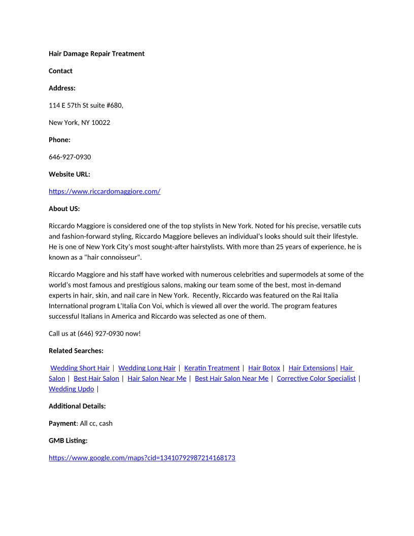 Hair Damage Repair Treatment - 114 E 57th St suite #680 New York, NY 10022