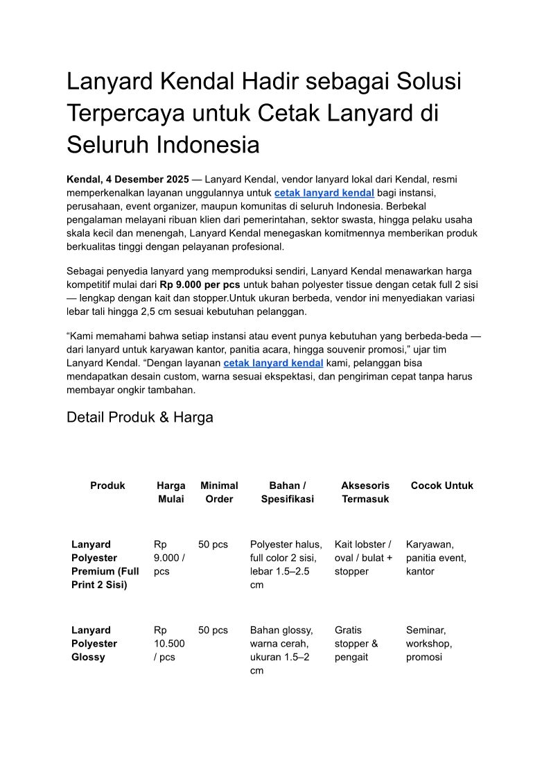 Lanyard Kendal Hadir sebagai Solusi Terpercaya untuk Cetak Lanyard di Seluruh Indonesia