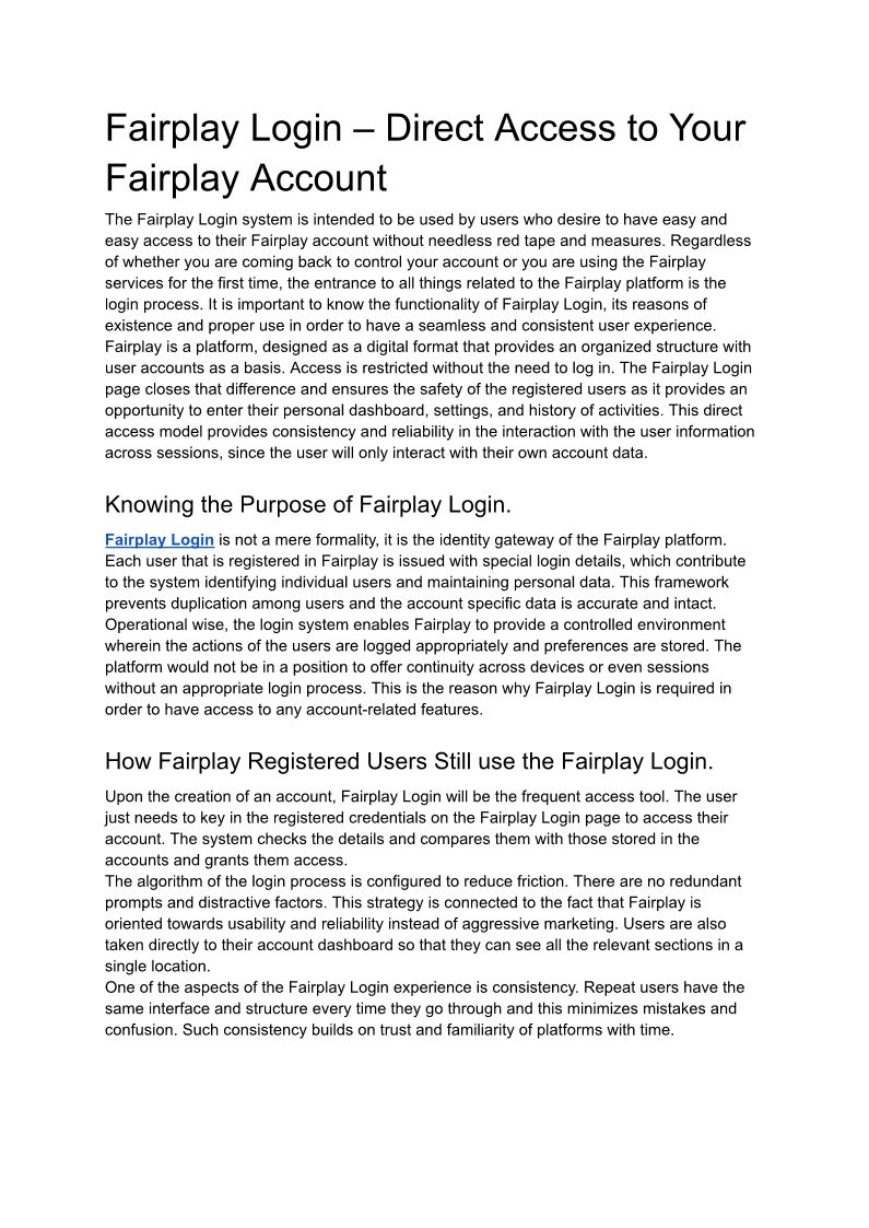 Fairplay Login – Direct Access to Your Fairplay Account