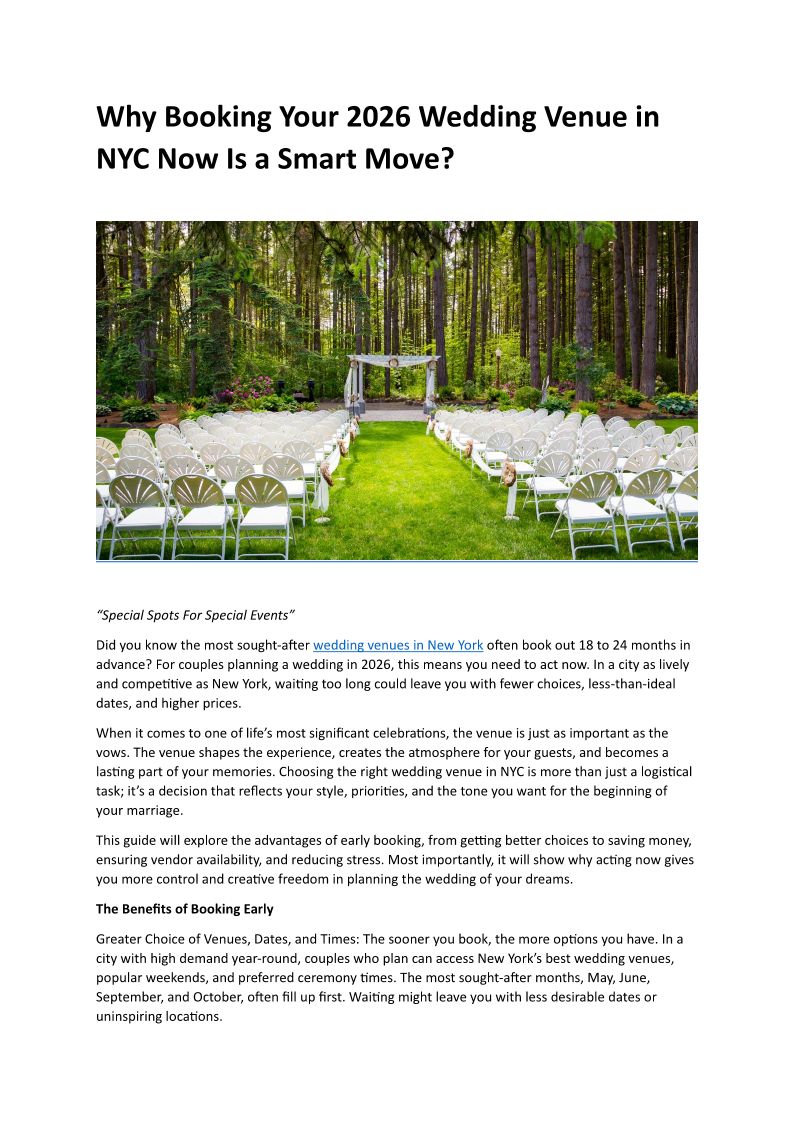 Why Booking Your 2026 Wedding Venue in NYC Now Is a Smart Move