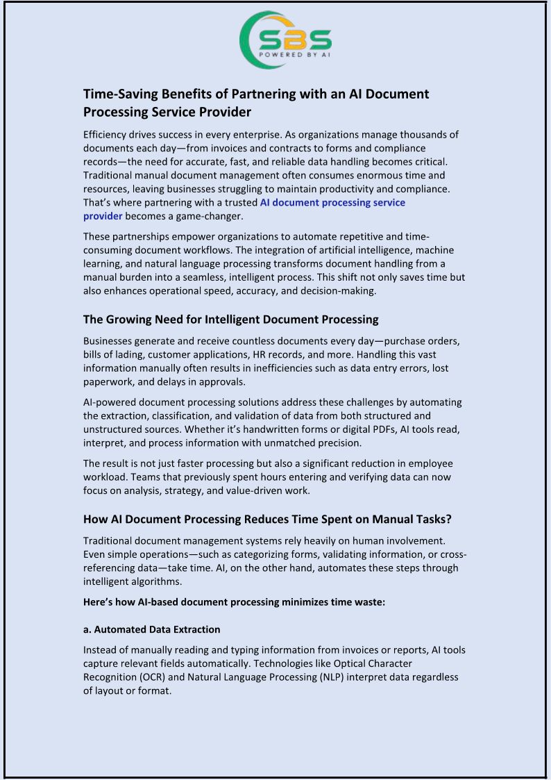 Time-Saving Benefits of Partnering with an AI Document Processing Service Provider