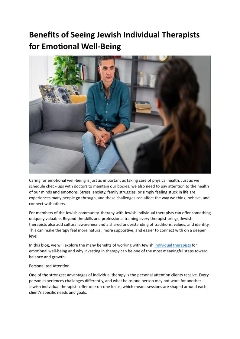 Benefits of Seeing Jewish Individual Therapists for Emotional Well-Being