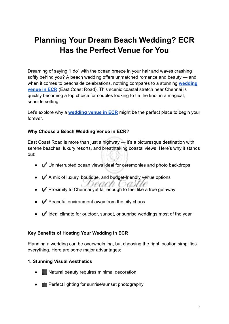 Planning Your Dream Beach Wedding? ECR Has the Perfect Venue for You