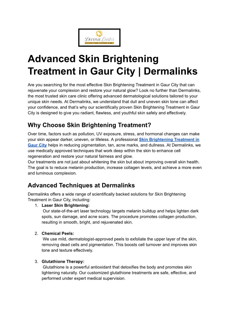 Advanced Skin Brightening Treatment in Gaur City _ Dermalinks