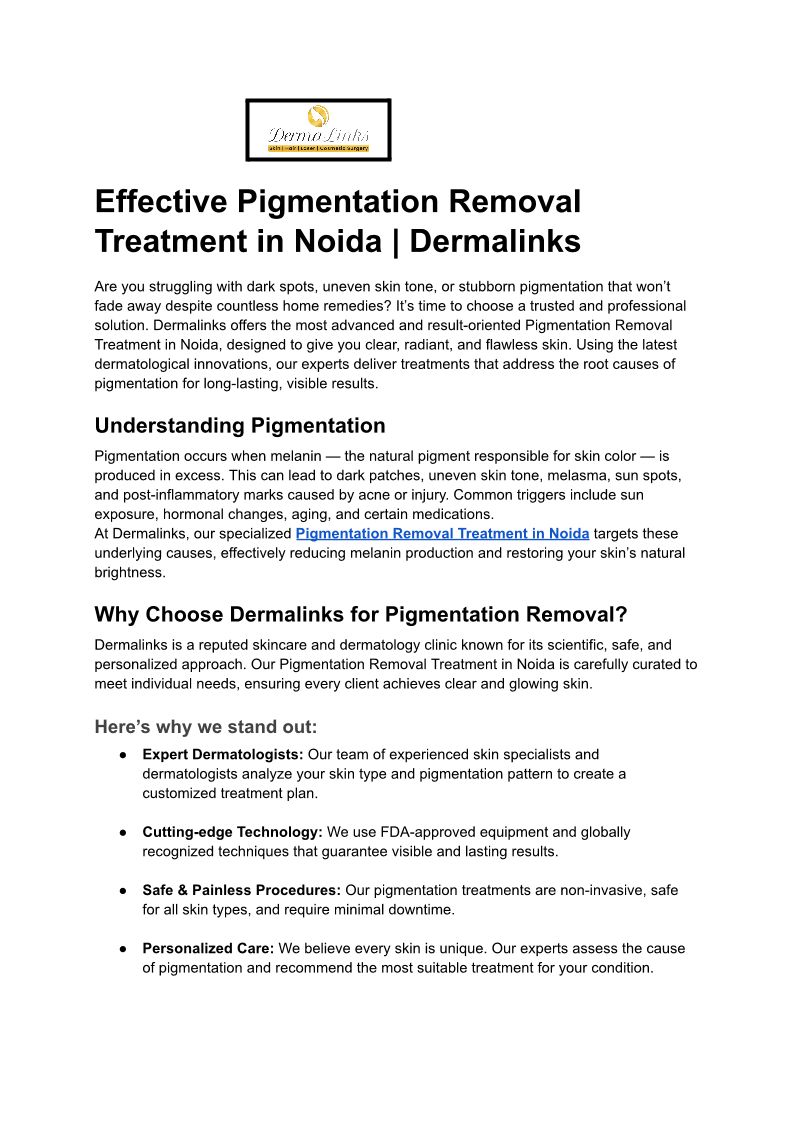 Effective Pigmentation Removal Treatment in Noida _ Dermalinks