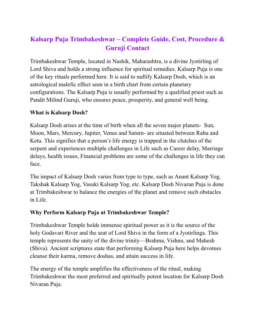 Kalsarp Puja Trimbakeshwar – Complete Guide, Cost, Procedure & Guruji Contact