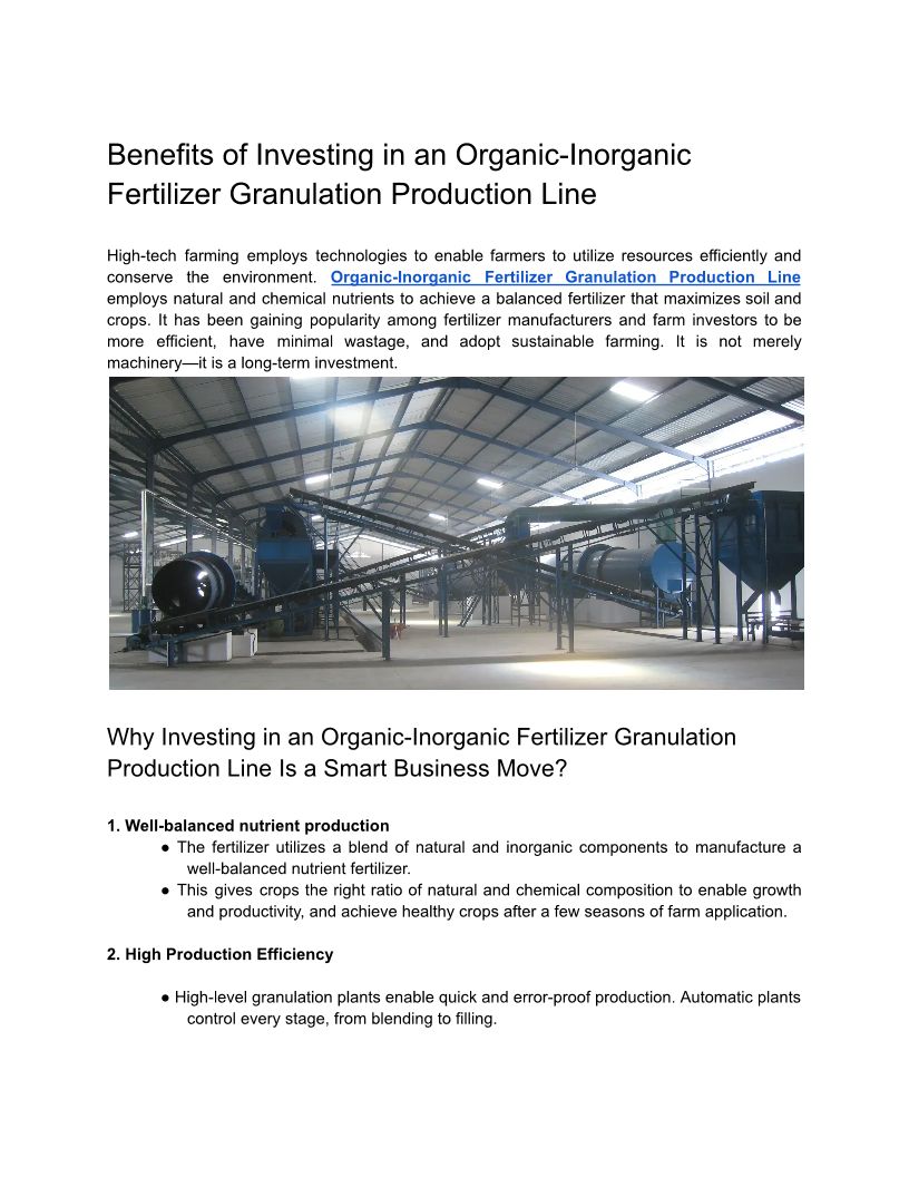 Benefits of Investing in an Organic-Inorganic Fertilizer Granulation Production Line