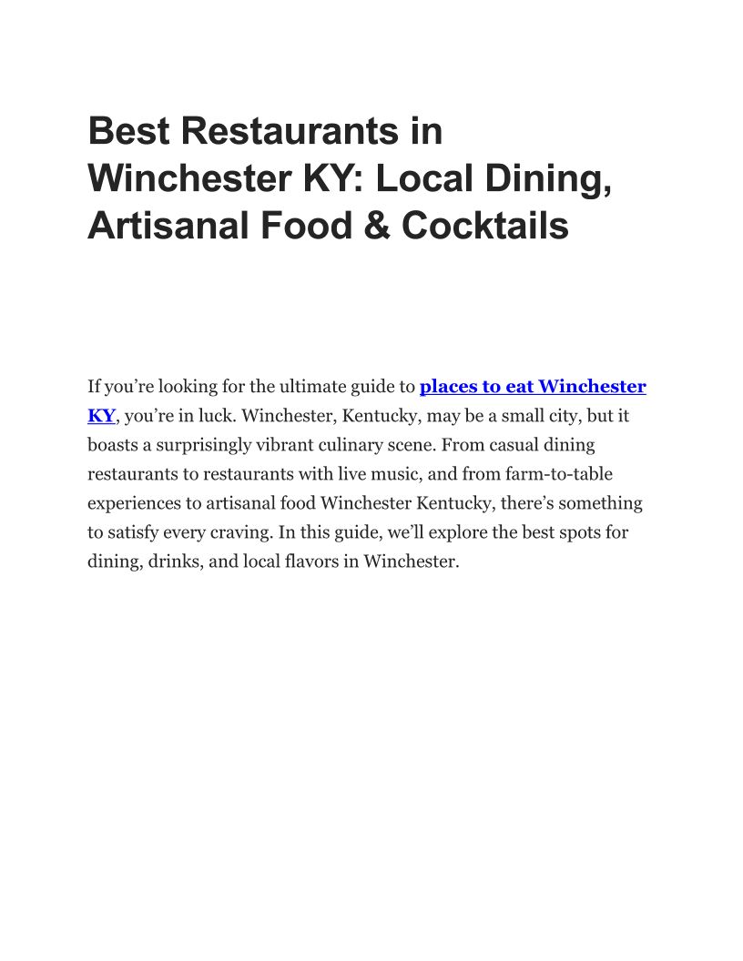 Best Restaurants in Winchester KY Local Dining, Artisanal Food & Cocktails