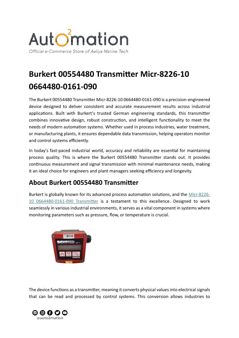 Burkert 00554480 Transmitter Micr-8226-10 0664480-0161-090