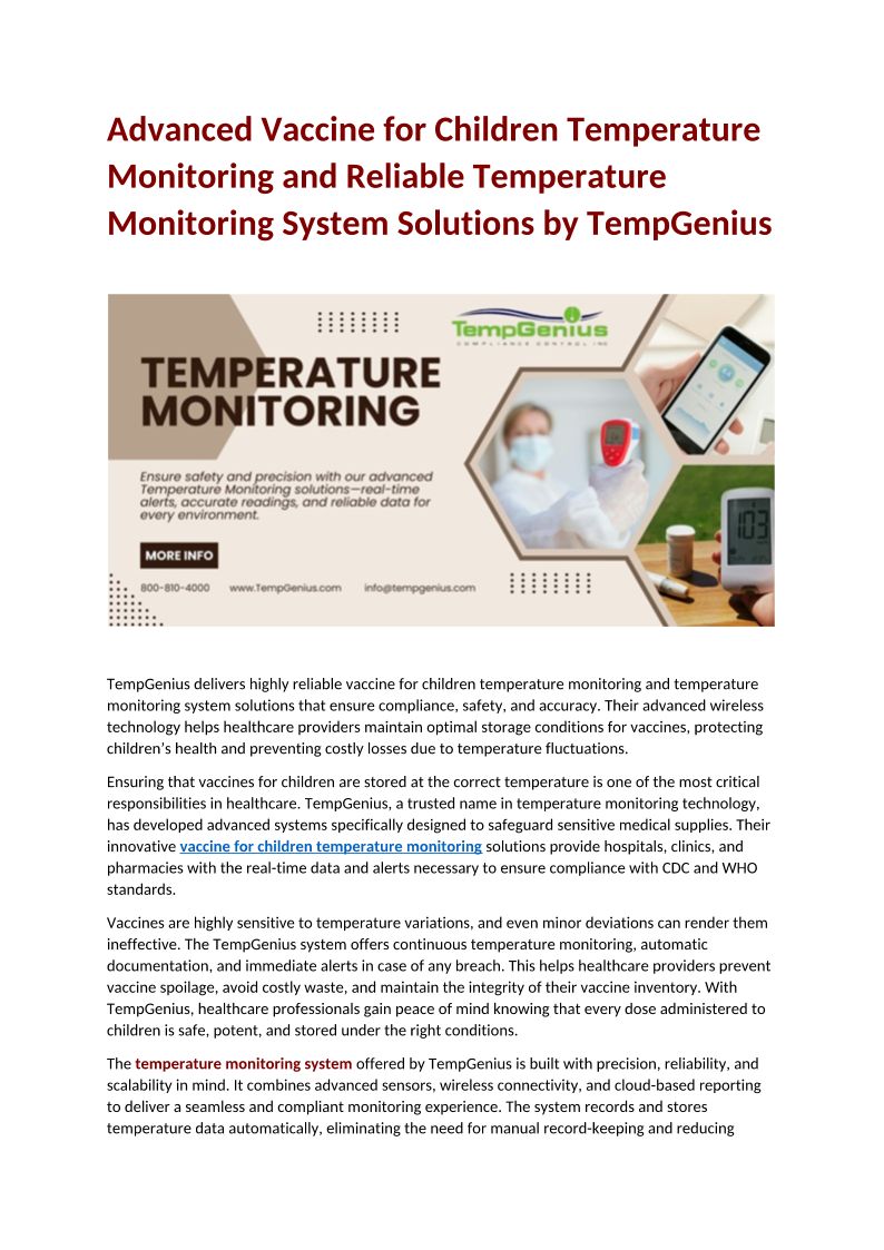 Advanced Vaccine for Children Temperature Monitoring and Reliable Temperature Monitoring System Solutions by TempGenius