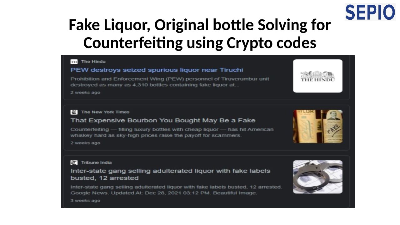 Fake Liquor, Original bottle: Solving for Counterfeiting using Crypto codes