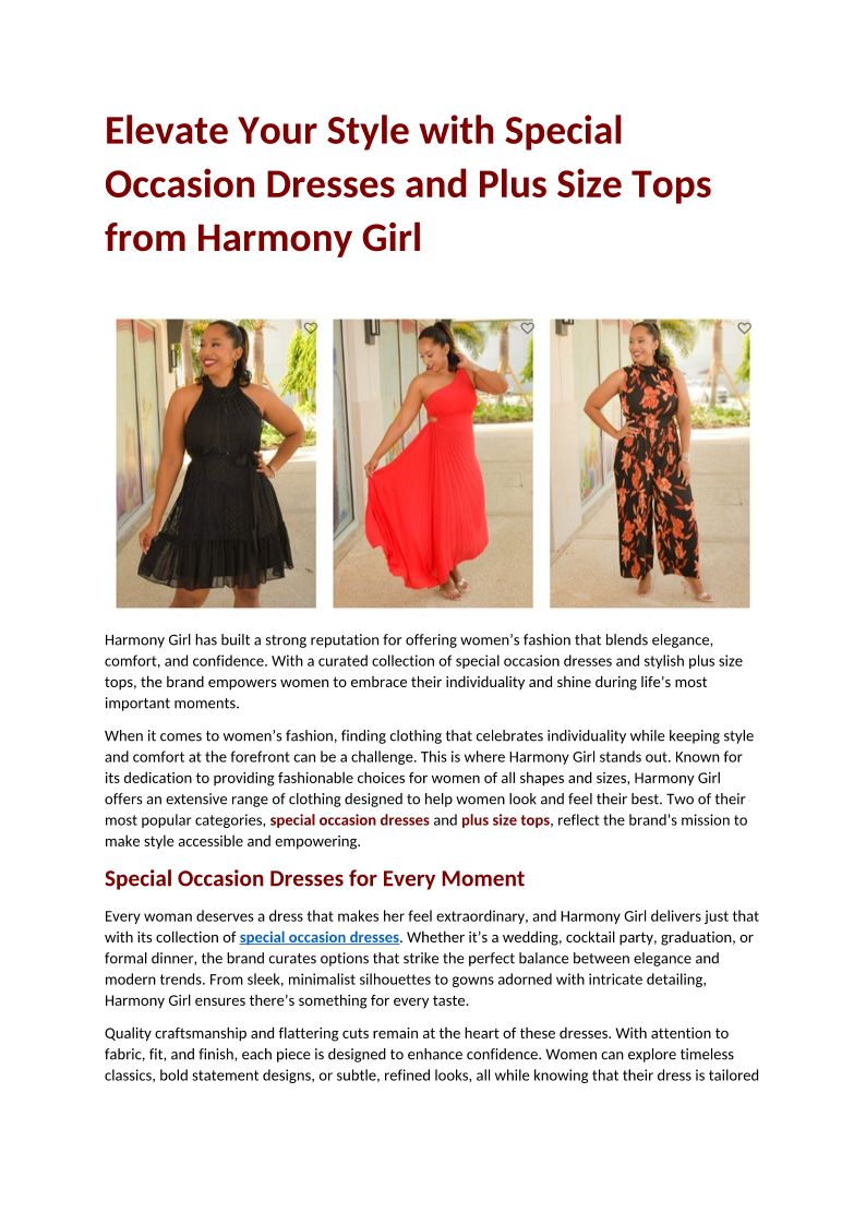 Elevate Your Style with Special Occasion Dresses and Plus Size Tops from Harmony Girl