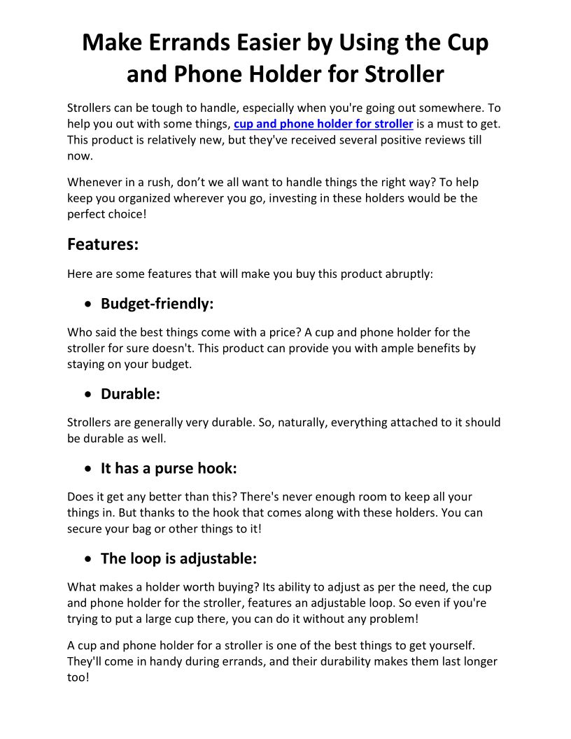 Make Errands Easier by Using the Cup and Phone Holder for Stroller