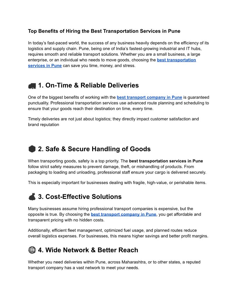 Top Benefits of Hiring the Best Transportation Services in Pune