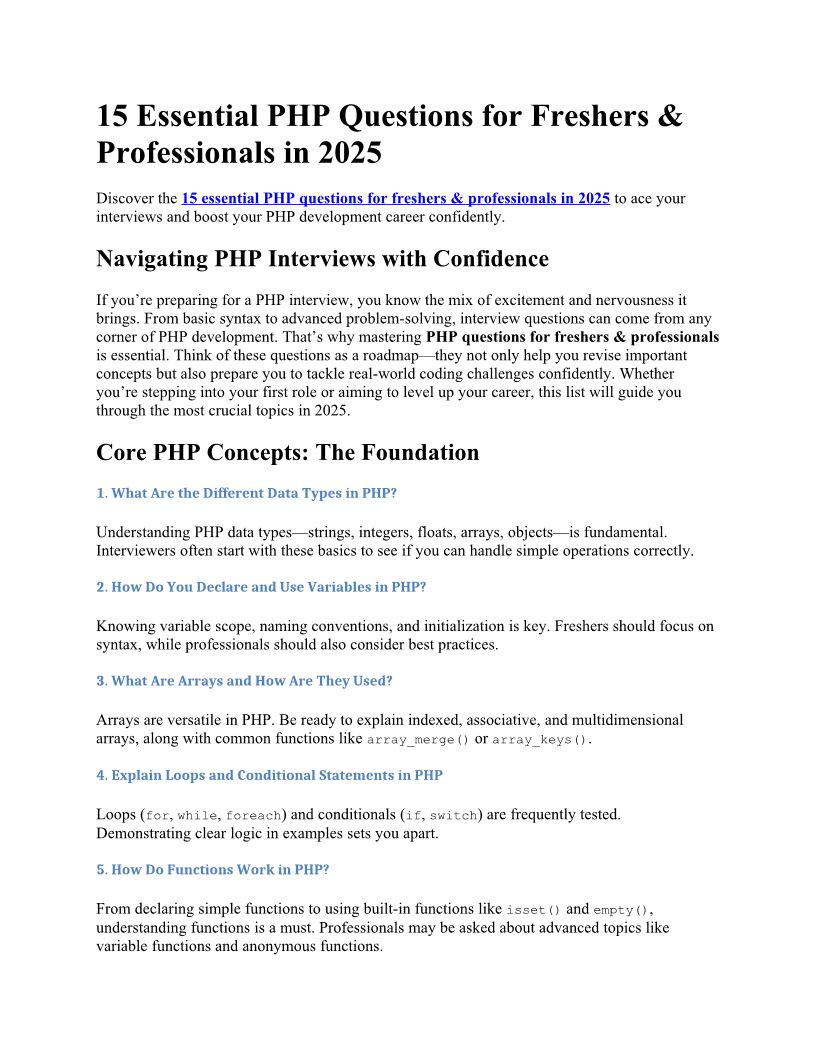 15 Essential PHP Questions for Freshers & Professionals in 2025