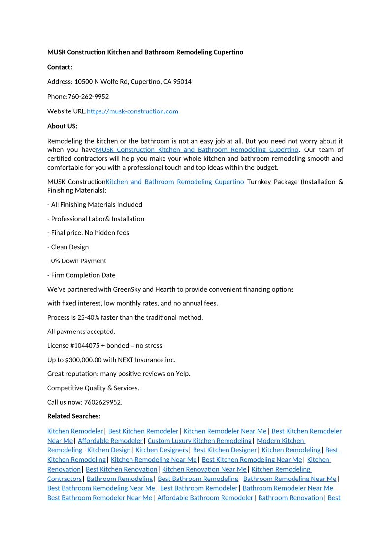 MUSK Construction Kitchen and Bathroom Remodeling Cupertino