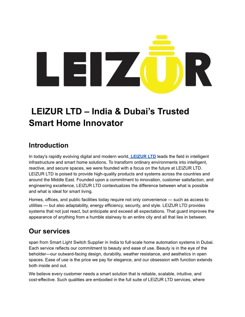 LEIZUR LTD-India & Dubai’s Trusted Smart Home Innovator