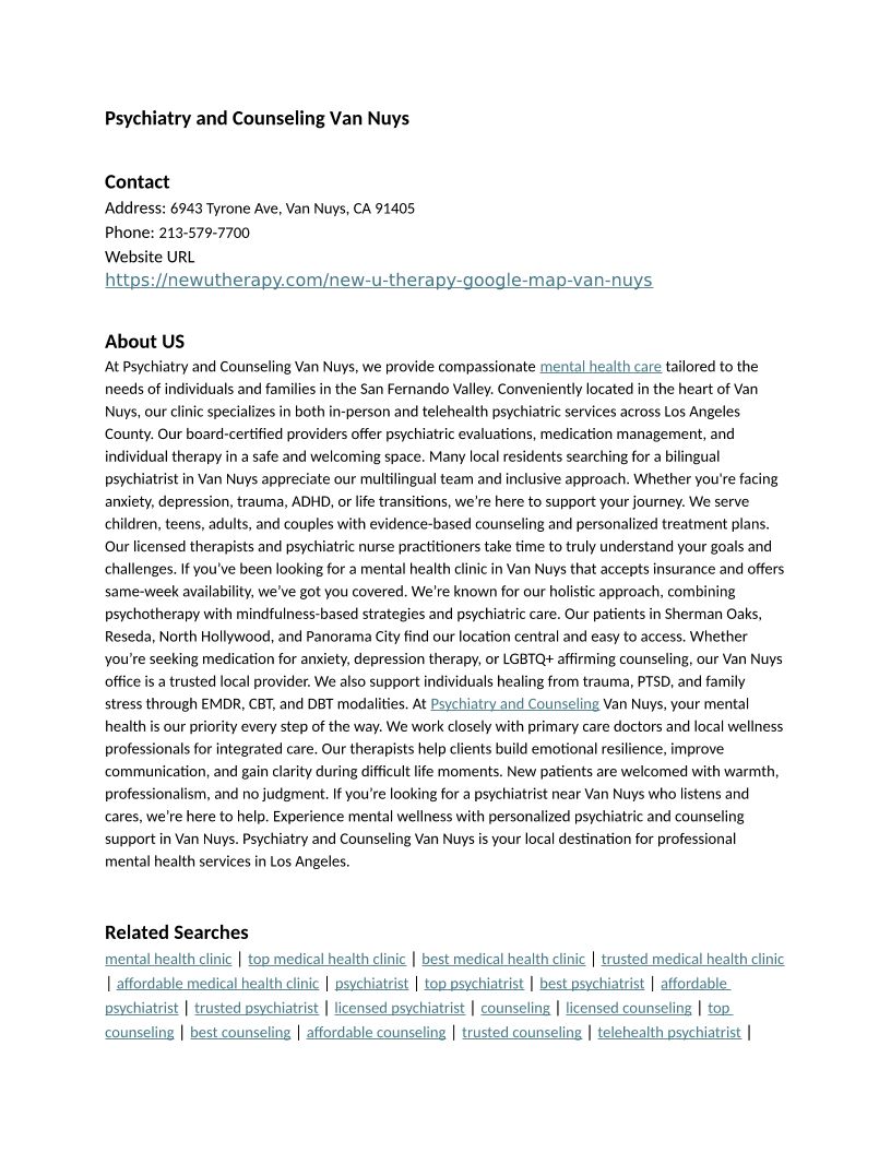 Psychiatry and Counseling Van Nuys-6943 Tyrone Ave, Van Nuys, CA 91405
