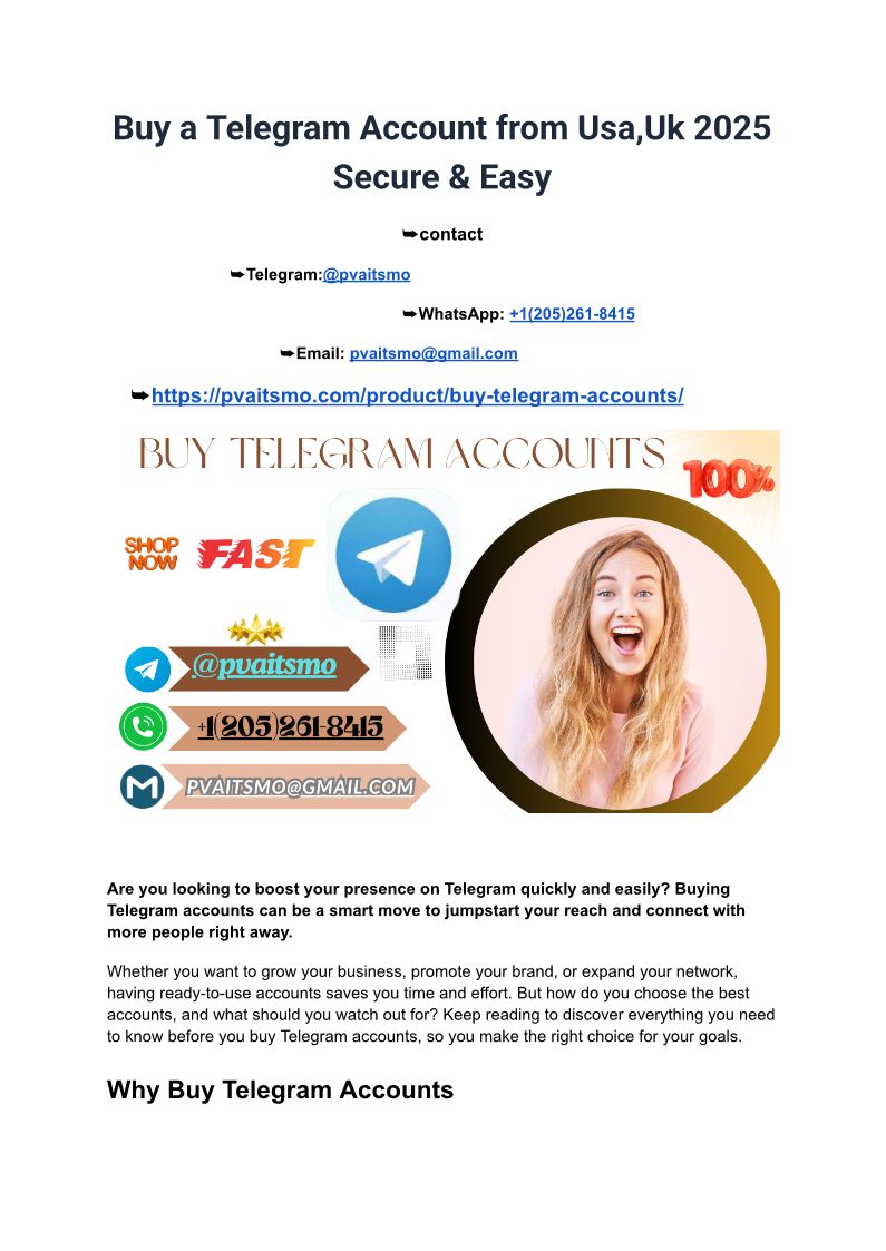 Buy Telegram Accounts - 100% Old and USA Verified...