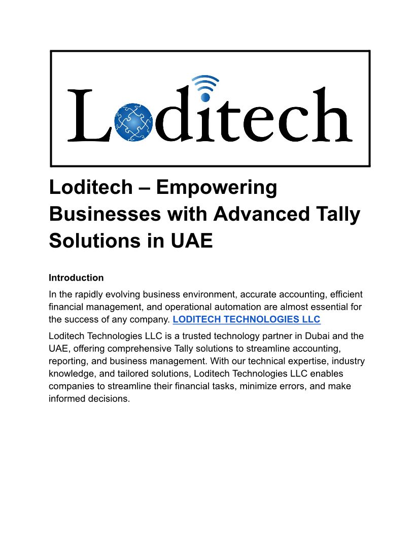 Loditech – Empowering Businesses with Advanced Tally Solutions in UAE