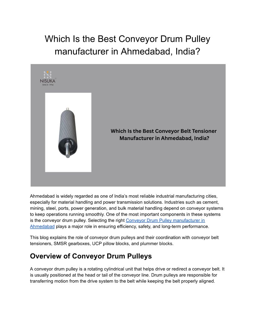 Which Is the Best Conveyor Drum Pulley manufacturer in Ahmedabad, India