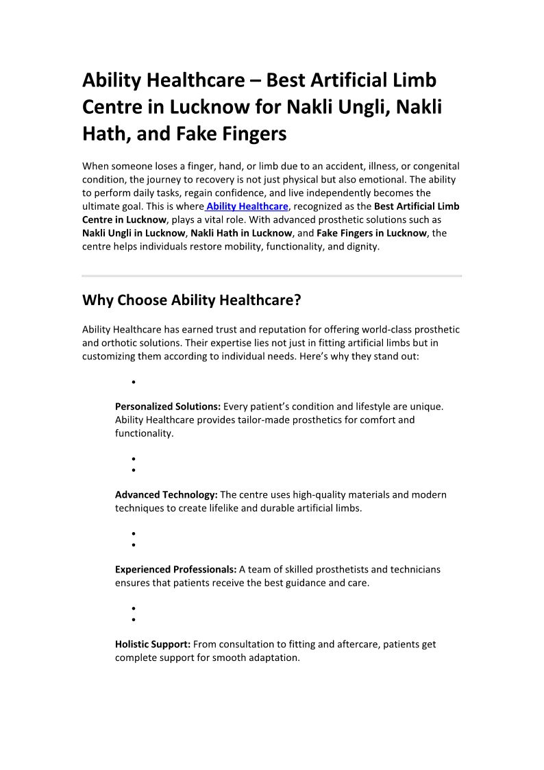 Ability Healthcare – Best Artificial Limb Centre