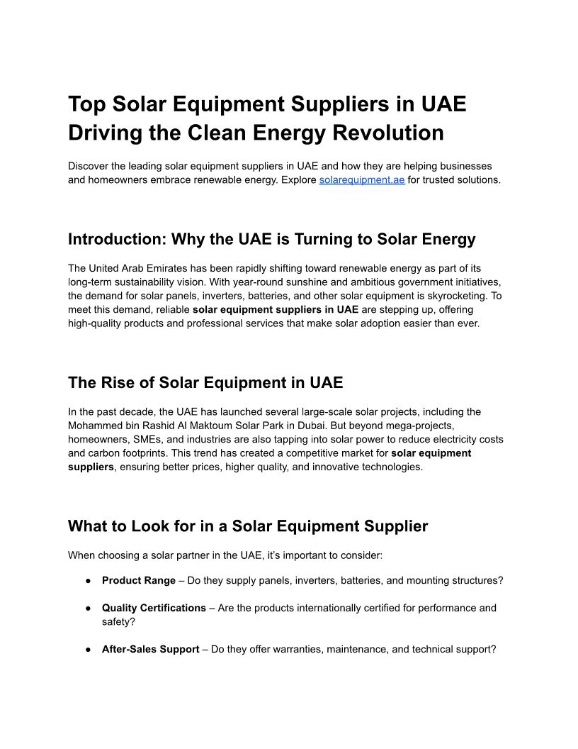 Top Solar Equipment Suppliers in UAE Driving the Clean Energy Revolution