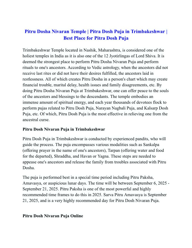 Pitru Dosha Nivaran Temple _ Pitra Dosh Puja in Trimbakeshwar _ Best Place for Pitra Dosh Puja