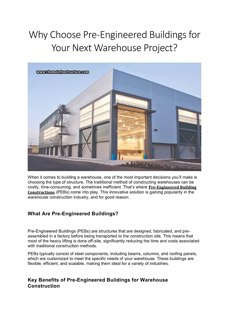 Why Choose Pre-Engineered Buildings for Your Next Warehouse Project?