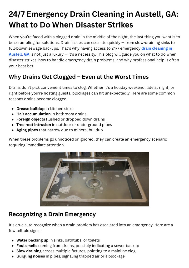 24/7 Emergency Drain Cleaning in Austell, GA What to Do When Disaster Strikes