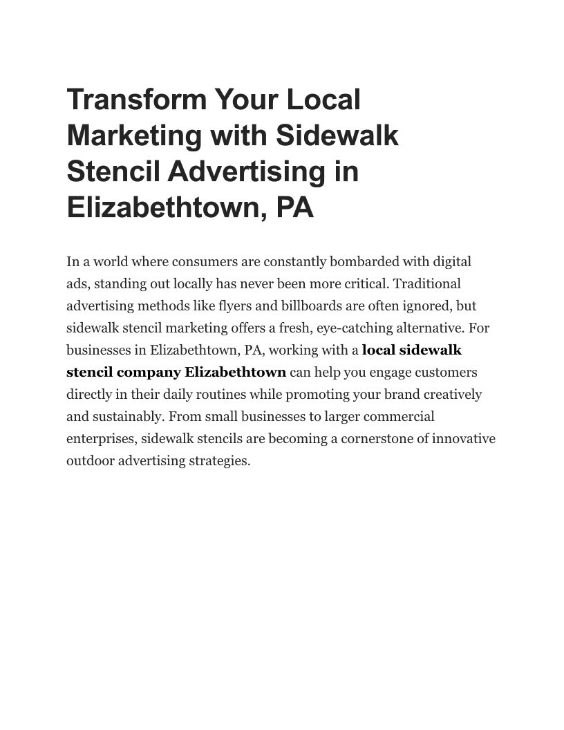 Transform Your Local Marketing with Sidewalk Stencil Advertising in Elizabethtown