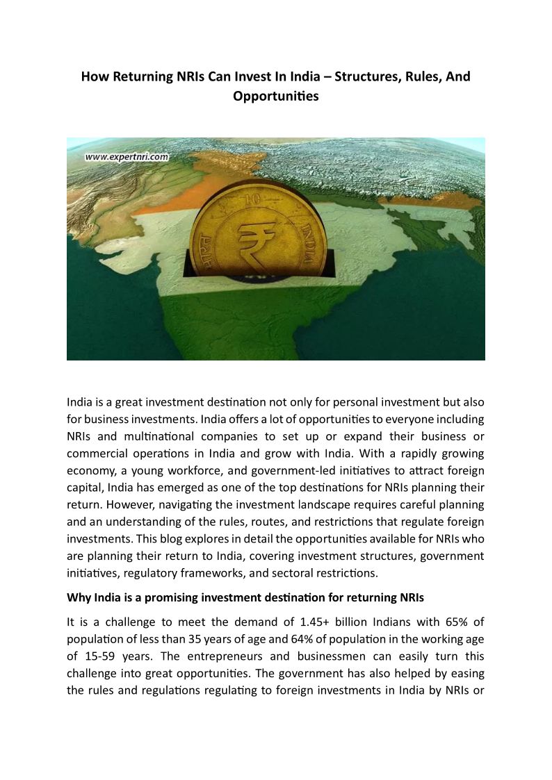 How Returning NRIs Can Invest In India – Structures, Rules, And Opportunities