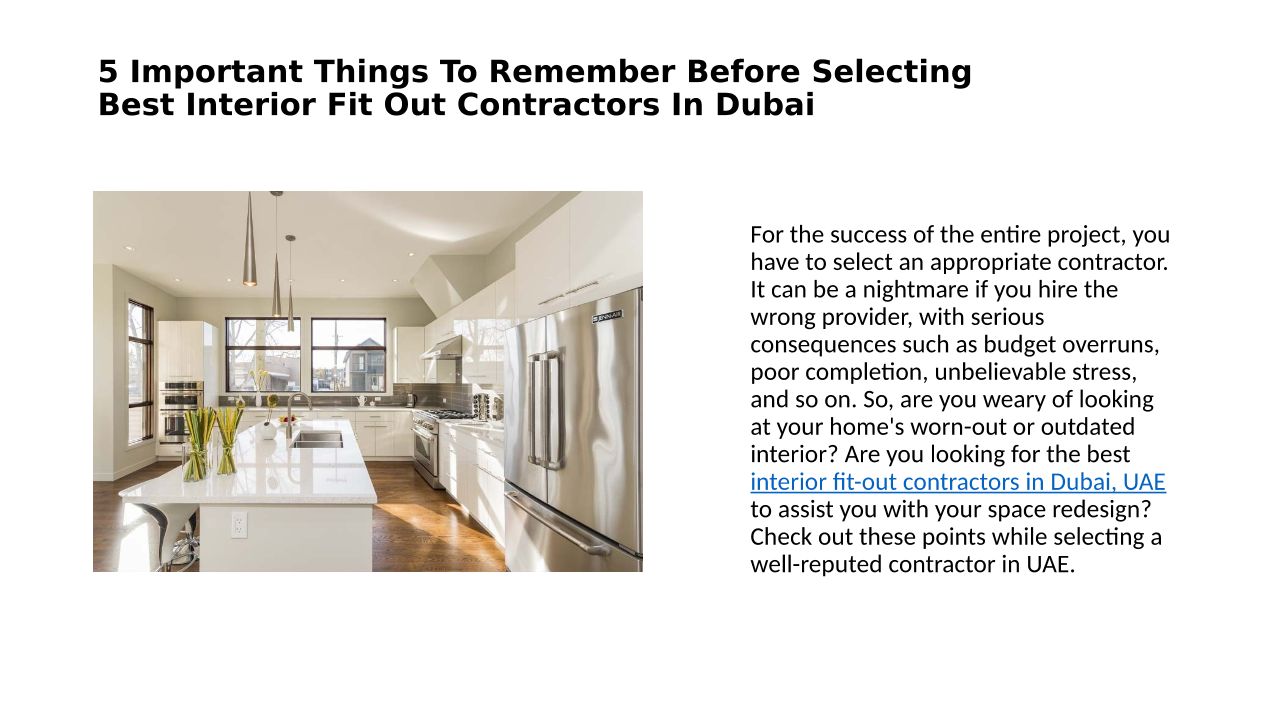 5 Important Things To Remember Before Selecting Best Interior Fit Out Contractors In Dubai