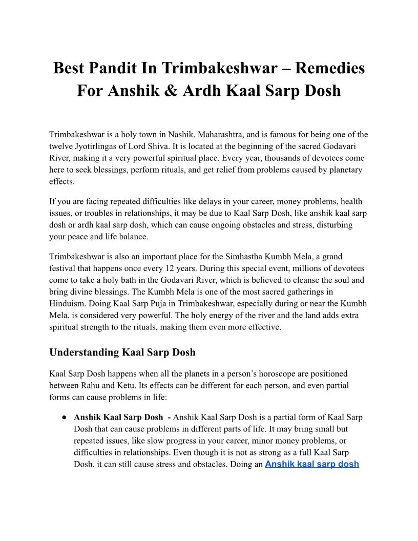 Best Pandit In Trimbakeshwar – Remedies For Anshik & Ardh Kaal Sarp Dosh