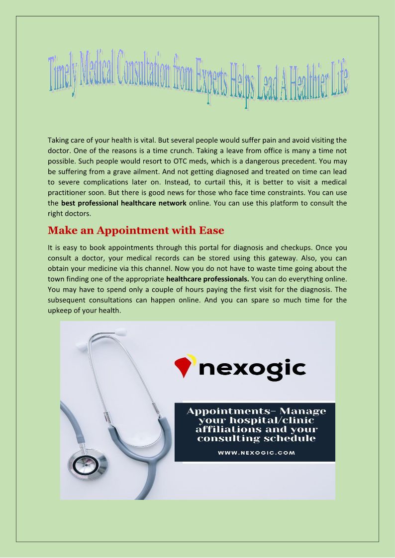 Timely Medical Consultation from Experts Helps Lead A Healthier Life