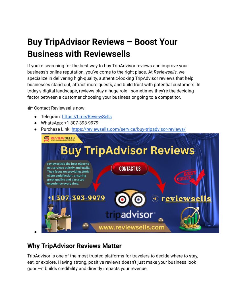 Buy TripAdvisor Reviews – Boost Your Business with Reviewsells