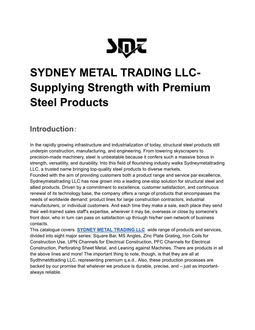 SYDNEY METAL TRADING LLC- Supplying Strength with Premium Steel Products