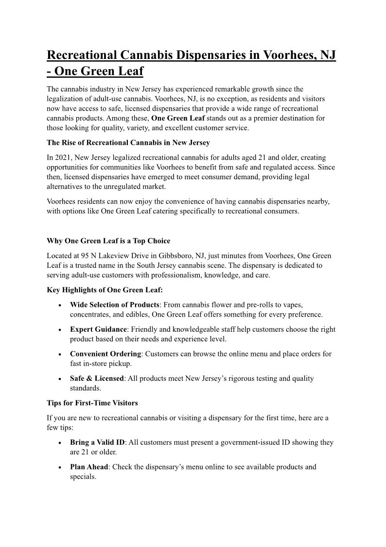Recreational Cannabis Dispensaries in Voorhees
