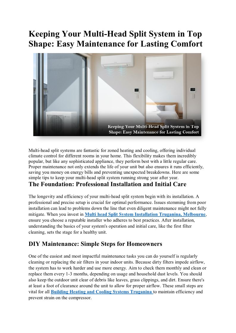 Keeping Your Multi-Head Split System in Top Shape Easy Maintenance for Lasting Comfort