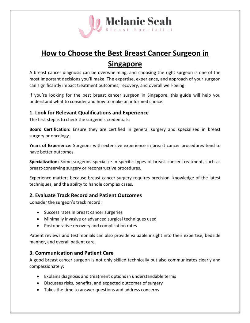 How to Choose the Best Breast Cancer Surgeon in Singapore