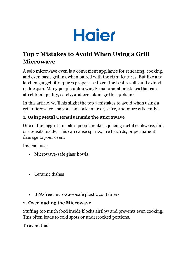 Top 7 Mistakes to Avoid When Using a Grill Microwave