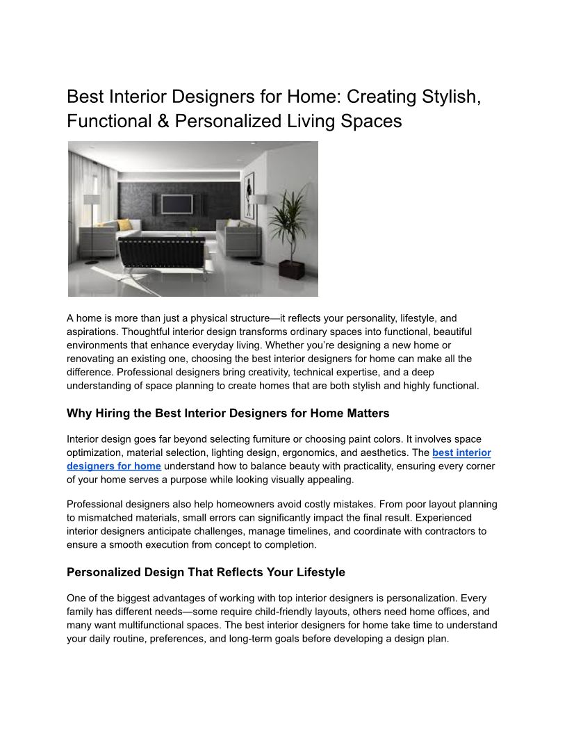Best Interior Designers for Home | Stylish & Functional Spaces